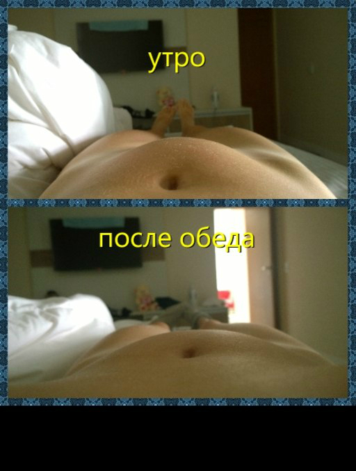 Я набрала 1 кг, пузо пошло вреред, там и пузо и жир выходит наружу. Не люблю этот период когда все думают что толстая:)