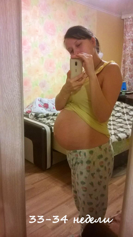 Сейчас нам 34, и живот заметно вырос) Доча пинается. Правда Врач сказала очередной раз, что она лежит очень низко. Я прям ощущаю ее копошения в самом низу и такое впечатление, когда ходишь, что между самых ног.. Сказала мне носить бандаж, т к ходить тяжело из-за этого совсем. Мысли как и у многих на ББ о том., что я рожу раньше, не обошли меня стороной.