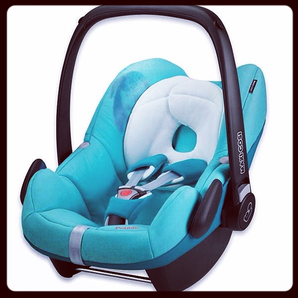 Ещё взяли автокресло Maxi Cosi Pebble чудесного бирюзово-зелёного цвета с кроликом сбоку)) Тоже б/у в отличном состоянии.