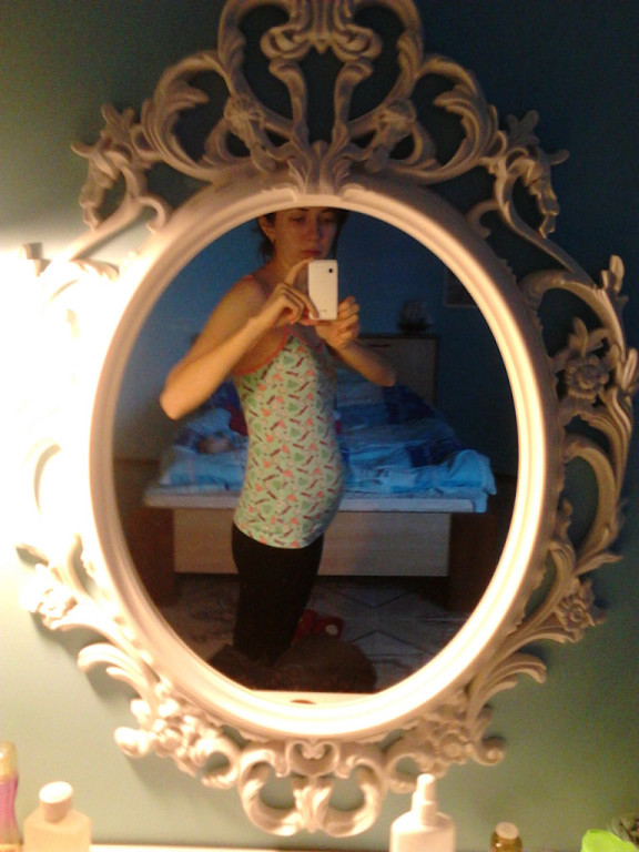 А пузик очень даже есть, просто он очень аккуратненький. Наверное пресс у будущей мамочки очень хороший?