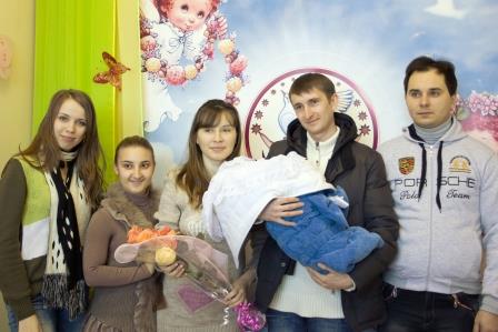 На выписку пришли мои подружечки)))) с которыми я познакомилась на аэробике, мой братишка и наш папашка :-)