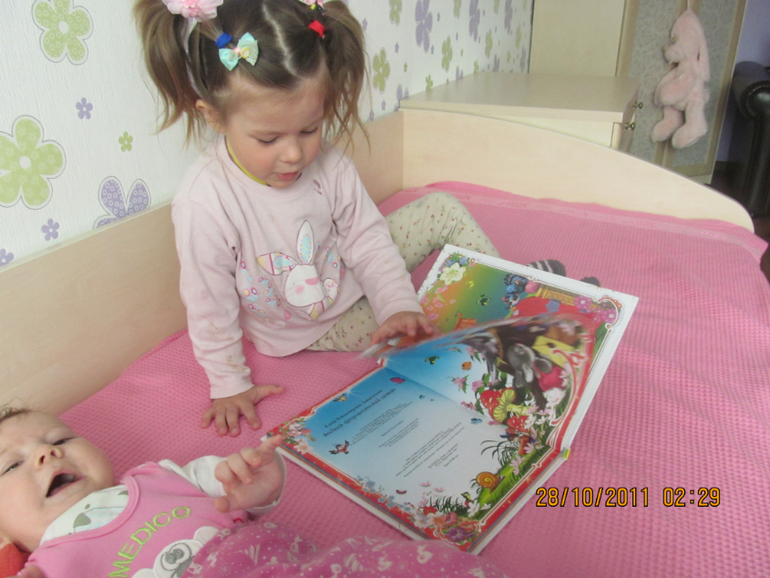 Пока я пытаюсь разлепить глаза ,Настя уже снимает брату подгузник) . Спит она отдельно , в своей детской .Просто утром как проснётся прибегает к нам. Иногда ночью зовет , но всё реже уже...