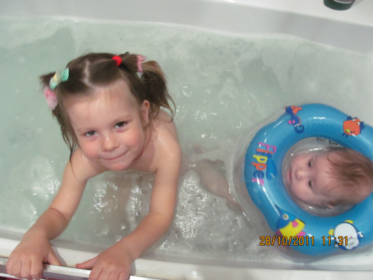 Поиграла с папой . Потом Саня попринимал воздушные ванны и я пошла их купать.