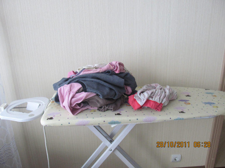 Супчик покушали , потом играет Настя , Саша наблюдает . Я глажу небольшую кучку белья