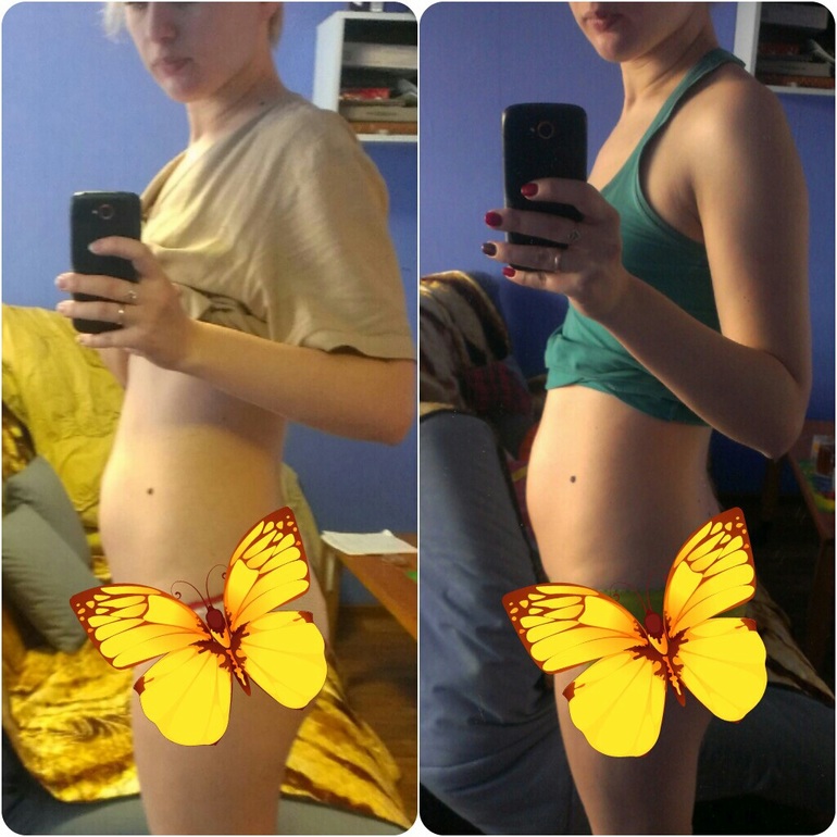 Ну и фотопуз. Слева 16 недель, справа 17. Бугор поднялся =)