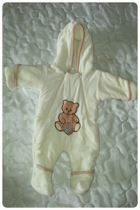 5. теплый флисовый комбез на подкладе 56размера. кажется очень маленьким. на случай холодной погоды в июне. еще один комбез 62 размера купила на выписку, более девчачий и красивый) отдельно потом покажу, когда полностью будет готов комплект на выписку.
