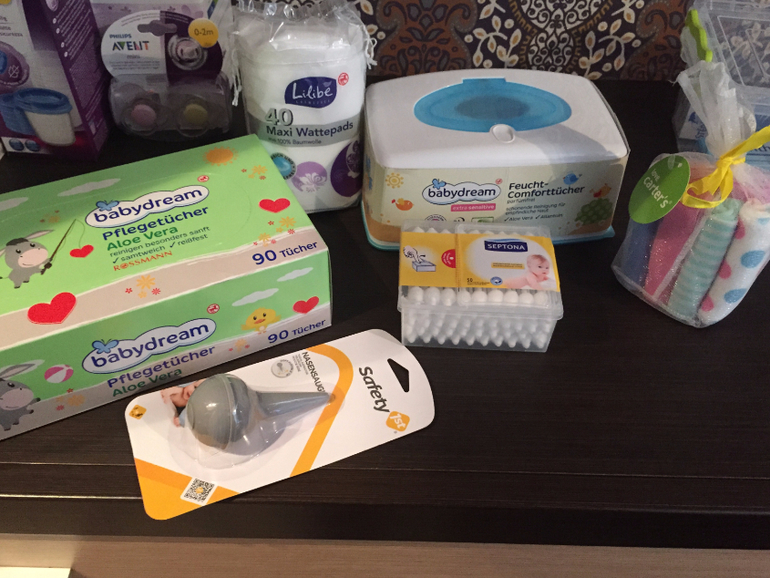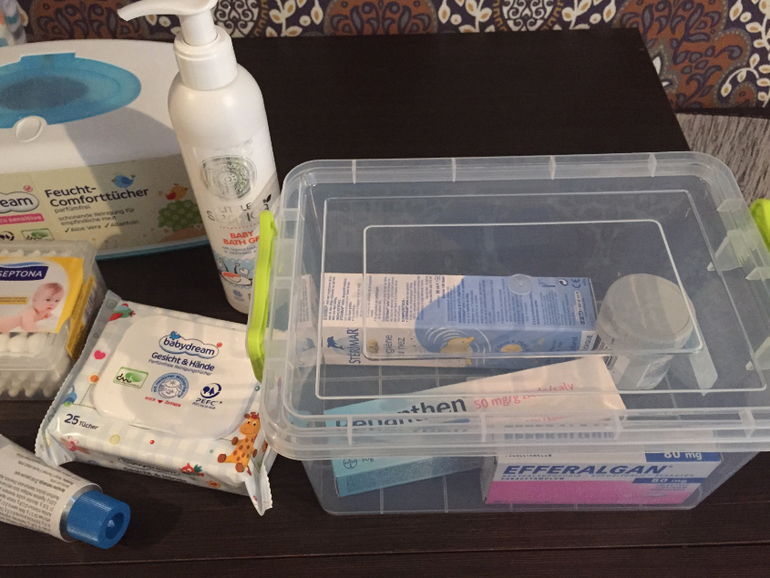 Ну из гигиены и аптечки не много: полотенчики маленькие, то сё подтереть, для мытья только одно средство. И всё. После двух детей поняла, что много не надо, да и мы много мыли просто водой. Посмотрим как будет кожа себя вести, пока купили Судокрем и Бепантен, никаких масел, кремов, присыпок. Со вторым сыном как и с первым всё выкинули. Мини клизма у нас для носа, сопли если что самое лучшее высасывать.Себе пока купила прокладки. Ещё надо трусики одноразовые. Купила ещё пижаму, чтоб кормить можно было. Носки на роды. Это у меня прямо пунктик: я очень боюсь щекотки на ногах и если у меня голые ноги, мне всегда кажется, что меня все хотят пощекотать, особенно на родах, где столько народу