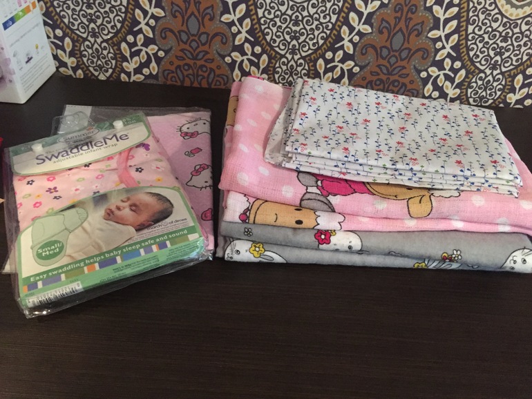 Пелёнок немного, ещё от сыновей где-то запрятаны, а это новые. Шила бабушка. Ну взяла одну для пеленания, посмотрим. и одна непромокаемая, но что-то она мне не внушает доверия, наверное куплю клеёнку помягче.