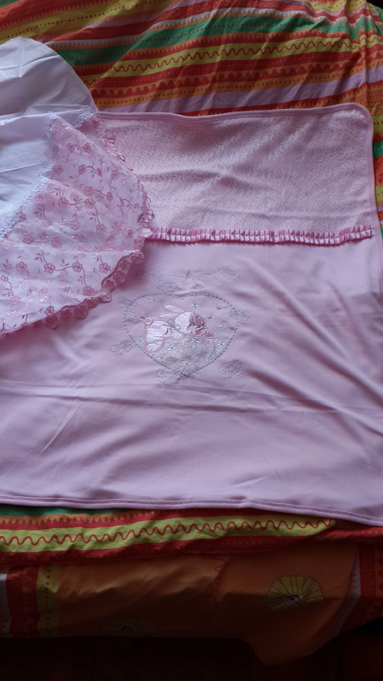 Приданое для малышаВот купила на выписку пледик и кружевной уголок... Теперь подумала, а как все это закрепляется? Надо купить атласную ленту? Никаких липучек на пледе нет. Конверт специальный не хотелось. И Что одеть внутрь? Памперс, лёгкий комбинезон или кофточка -штанишки, шапочка.. На погоду 25 градусов,например)