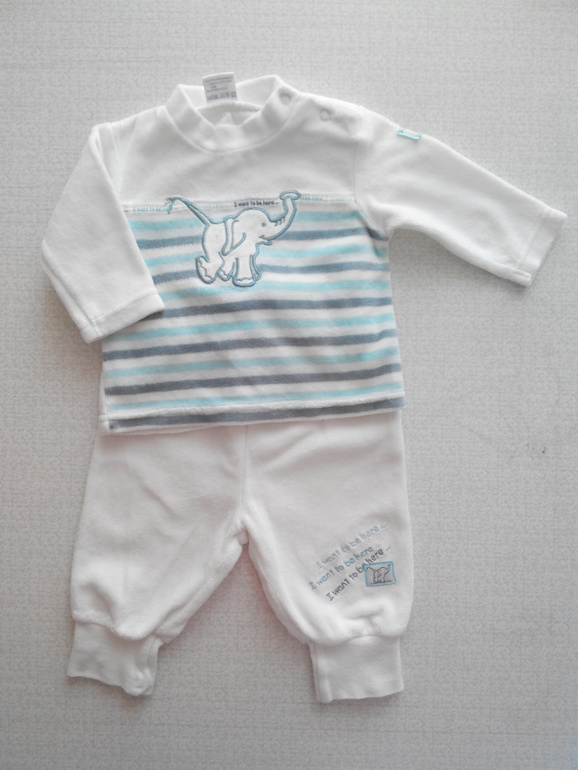 Приданое для малыша1. Костюмчик со слониками. Очень неплохо. Плюсом будет шапочка и носочки.