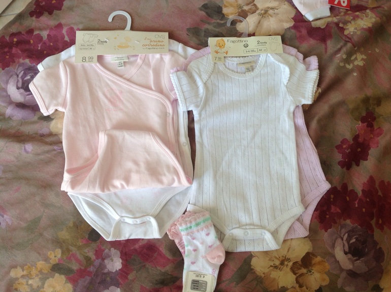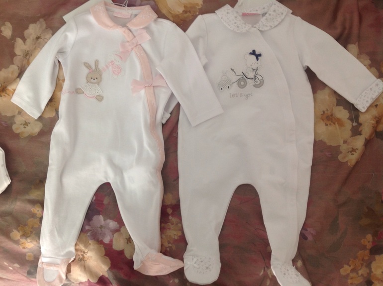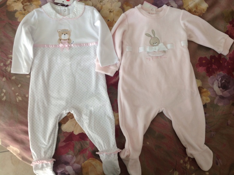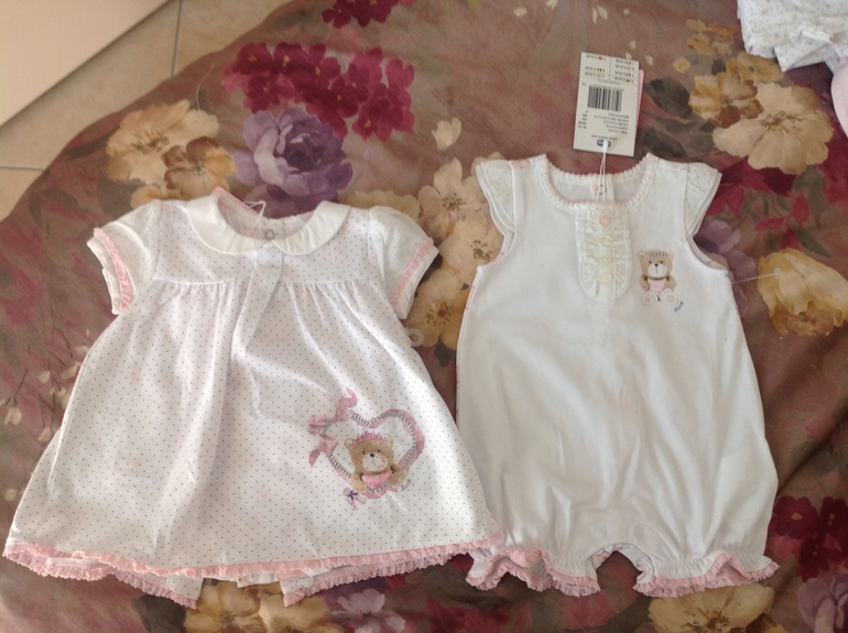Приданое для малышаКроватка, коляска и прочий крупногабарит остались от старшего, их выкладывать нет смысла. А новую одежку покажу. Бодики и слипики унисекс тоже остались в небольшом количестве от сына, поэтому отрывалась по нарядным песочникам для дома и девчачьим слипам и платьицам. 80% это chicco, куплено в Италии, где всё подешевле, чем в Москве)))