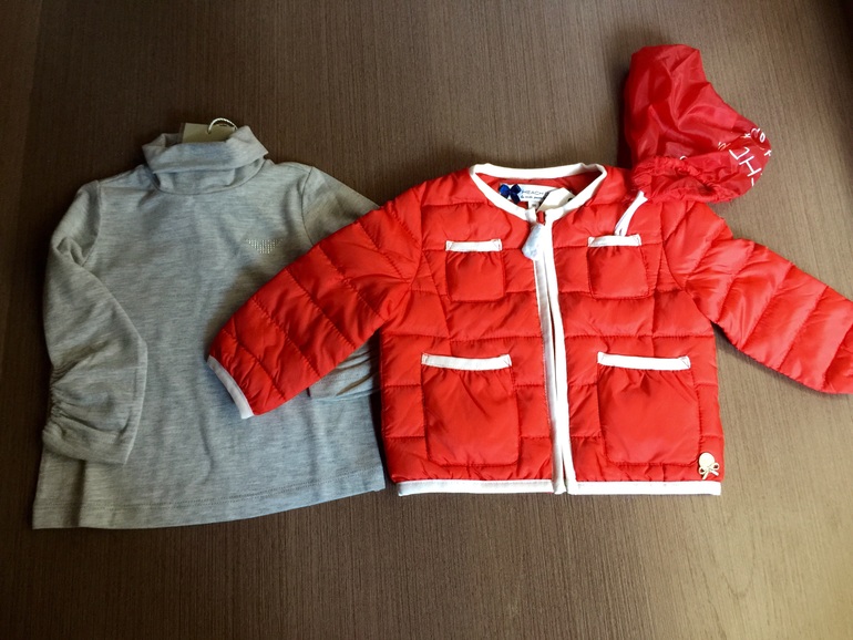 Пуховик на зиму-очень теплый. Цвет в реале чуть ярче. Остальная одежда уже уехала в новую квартиру,как доберусь до нее-покажу...и несколько игрушек и пинетки