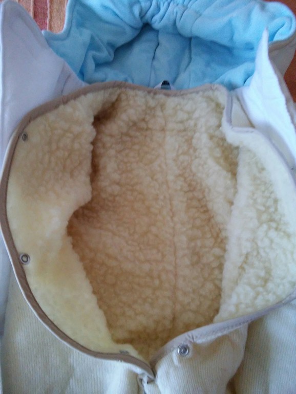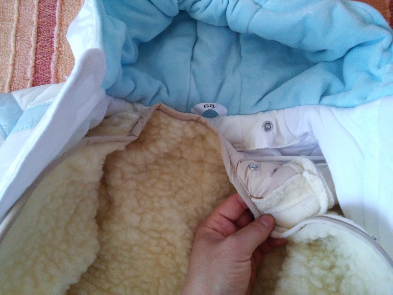 И наконец конверт, который можно полностью открыть, в машине например, и в котором очень удобно пристегнуть ребенка к автокреслу.