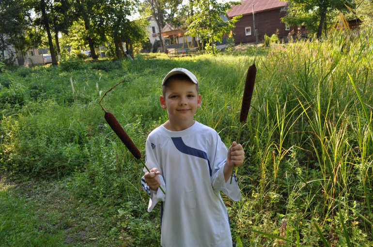 Коля дорвался до камыша) Исследовал его со всех сторон))