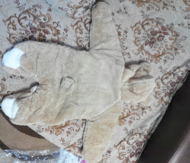 у нас такой есть, покупали младшей дочке (желтый с жирафом). У этого комбинезона очень сильное несоответствие длины рук и ног. Пока нам были ноги нормально, ручки можно было завязывать как смирительную рубашку, когда до рук доросли - ножки заканчивались в районе колен. Я бы не советовала. Хотя сам по себе он очень красивый, приятный на ощупь и теплый. Мы в итоге его носили когда вросли в руки, с высокими теплыми гольфами, как поддеву.