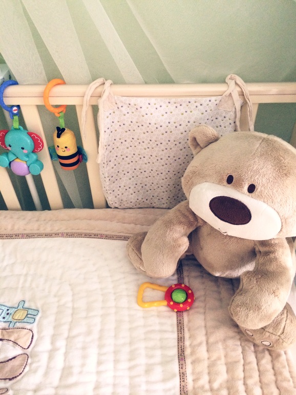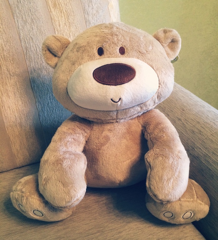 В кроватке сидит вот такой чудесный мишка, серии "Loved so much", выгодно попала на распродажу ;)