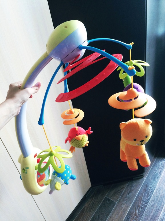 В кроватку повесили вот такой мобиль, с ночником и пультом, тоже mothercare, из серии Зоопарк.