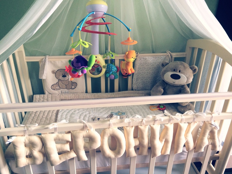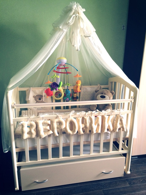 Ура-ура. Антел Алита - 4, с маятниковым механизмом. В кроватку я уже постелила один из постиранных и поглаженных комплектов постельного белья mothercare и балдахин Feretti.