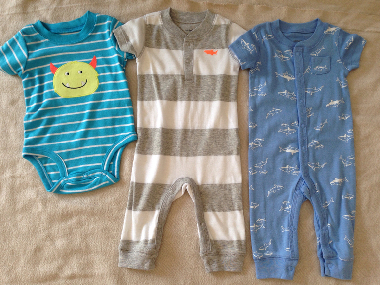 И ещё, обрати внимание, что оранжевый ваш слип закрывается на спинке. Это ж получается малышу потом лежать на этих кнопках... Мне кажется, это не айс. А 68-ой размер всё очень классное.