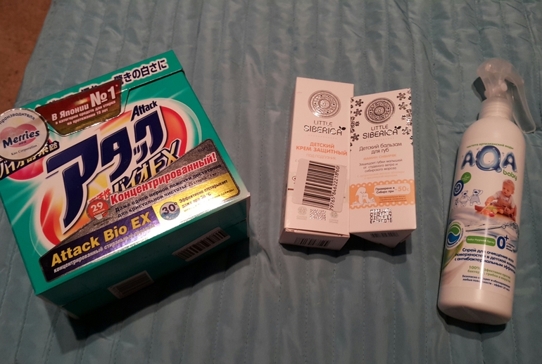 Средство для чистки поверхностей,крем под подгузник,гигиеничка и порошек.