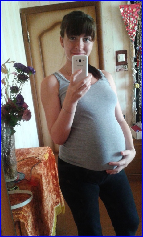Доча по прежнему ведет себя хорошо - балует несильными пиночками и перекатами в животе.