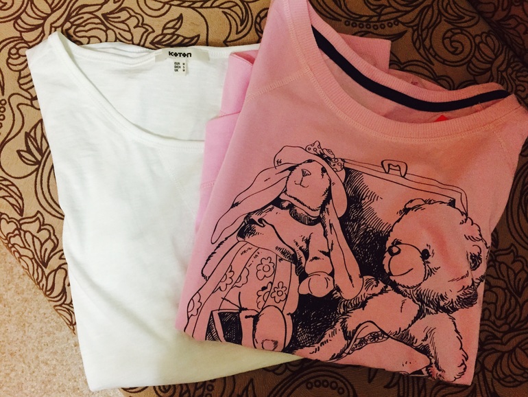 Это уже в конце, решила немного разбавить, розовая кофточка и белая футболка