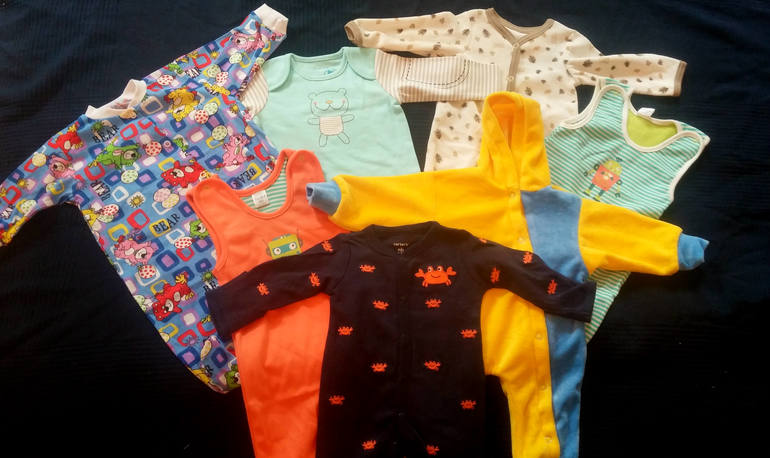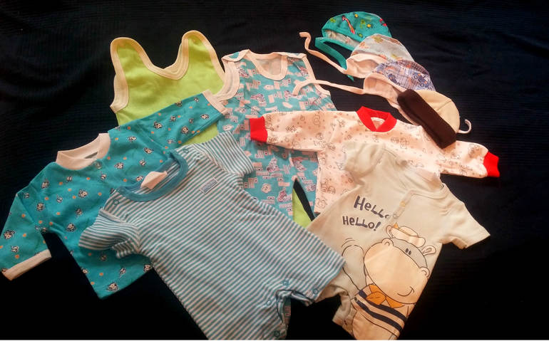 Итак, на данный момент у меня 9 предметов одежды размеров 50-56 (в основном слипы и боди с длинным рукавом) и 13 предметов размера 62.