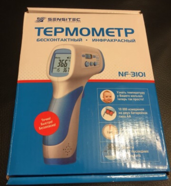 Ещё купила такой инфокрасный бесконтактный термометр, измеряет температуру тела за полсекунды, так же можно измерять температуру воды, еды...