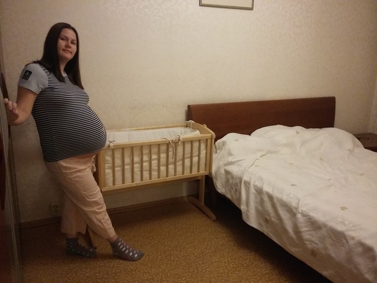 Муж собрал колыбельку (она такая крошечная,не знаю хватит ли до 6 мес как я хотела) и комод (чтобы я могла уже одежку перебрать)