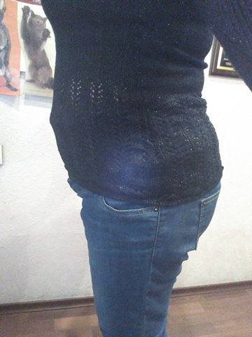 А вот и пуз на 30й неделе. Нарочно его не втягивала, но думаю, что резинка от беременных джинсов его немного утягивает.......