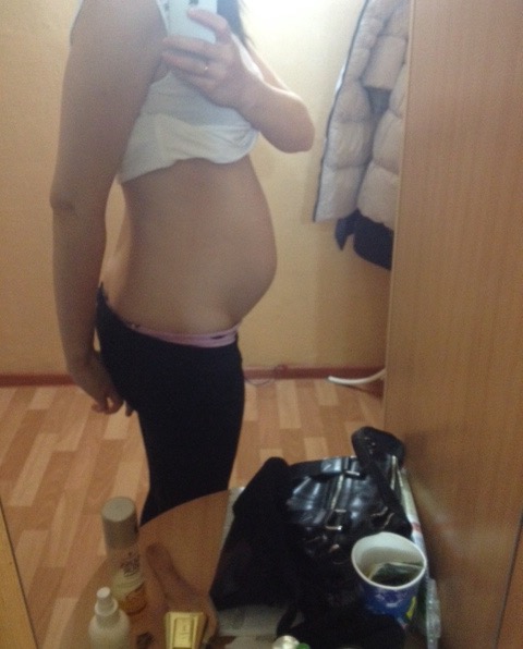 Ну и напоследок, фото пуза конечно же. Кстати, чтобы было видно весь масштаб катастрофы с весом - сравнительное фото в 22 недели. Только не смейтесь сильно =) Ах, какая я была стройная.. +)))