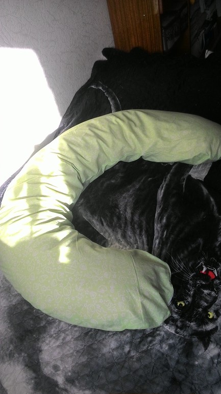 Одежда и товары для беременныхСшила себе такую подушку. Девочки, это нечто))) сплю как младенец)) Муж при каждом удобном случае тырит мою прелесть))) Если кому пригодится, ушло у меня 1,5х1,5 м тика на саму подушку, 1,5х1,5 м бязи на наволочку, 1кг холофайбера и 1 м синтепона (300). Синтепон нарвала на кусочки и смешала с холофайбером. Получилось в меру упруго и мягонько)))