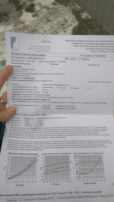 Да я знаю)) у меня с первым ребенком тоже были напрасные слезы из-за этого скрининга)) если бы сейчас это было не бесплатно, то даже и не пошла бы)