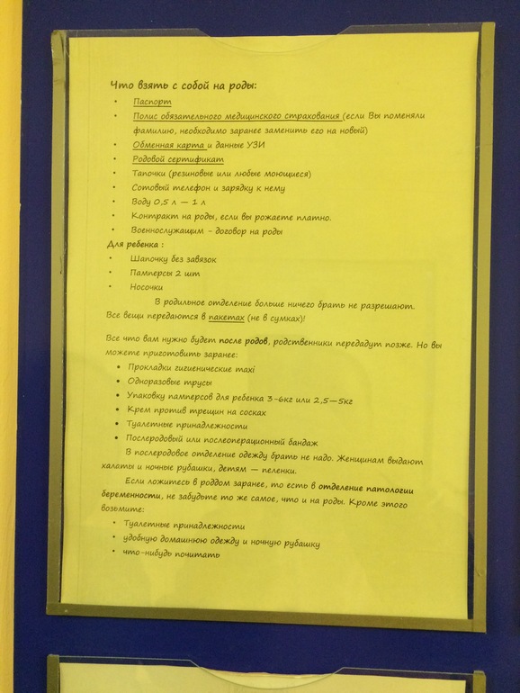2. Первая сумка (все, что нужно Вам и малышу), должен привезти кто-то из родственников. После того, как родите и Вас перевезут в послеродовое.