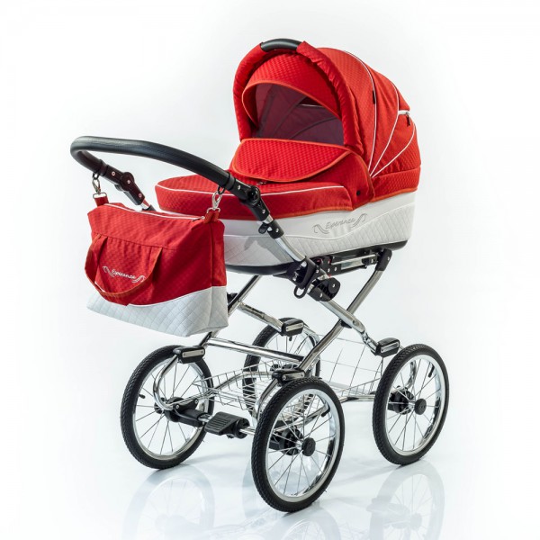 Сама люлька из белой эко кожи (нежнейший материал), а верх и сидячий блок из ткани красный жаккар. Мы ооочень долго выбирали цветовое решение коляски, и в итоге спрыгнув с пастельных тонов, в одну прекрасную ночь решили взять красно белый вариант. И сейчас вот смотрю на нее и ни чуточки не жалею о сделанном выборе, хотя ой как много я наслушалась, что красно белый вариант коляски исключительно для девочек, а мы то ждем мальчика...но это бред, как нам с мужем показалось (благо во всех вопросах, касаемых наших детей- мы с ним единая сила