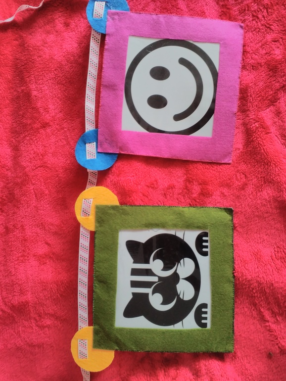 И обшила чёрно-белые картинки, чтобы вешать в кроватку малышке для рассматривания