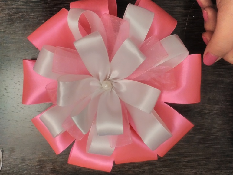 Далее мне захотелось сделать красивый бант на выписку. Вот что получилось