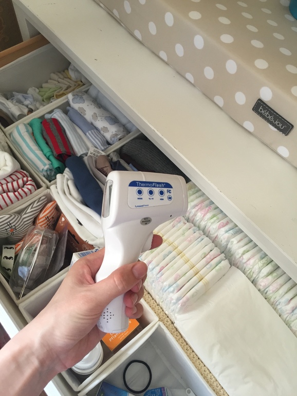 Термометр инфракрасный бесконтактный. Измеряет температуру тела за 1 секунду. Нужно просто поднести ко лбу и нажать на кнопку. Так же измеряет температуру воздуха в комнате, температуру воды. Как я раньше жила без него, я не знаю. Очень жалею, что не купила к Гришиному рождению.