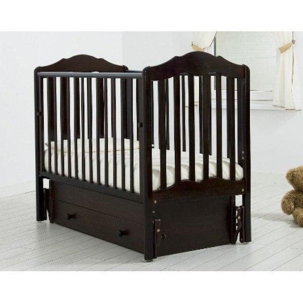 У нас такая цвет слоновая кость. Маятник на стопор никогда не ставили) ребенку он не мешает))) после года стала покачивать в кроватке если плохо спал. Я очень довольна) ящик вместительный.
