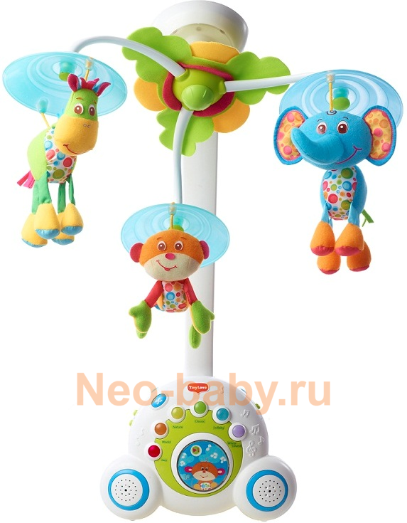 У нас Tiny Love, типа как на первом фото. Там такая музыка приятная классическая, цвета хорошие. Ребенку нравился. Это единственное на что он мог отвлекаться минут на 10 и лежать в кроватке.