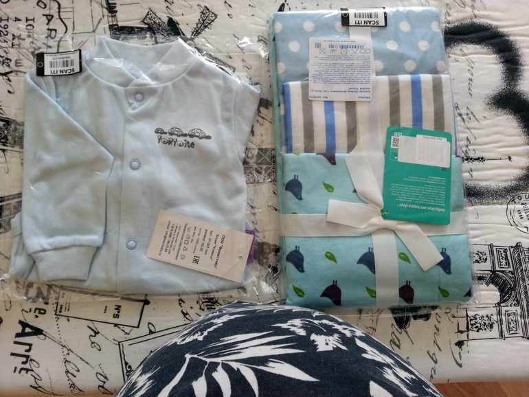 Ну и еще один заказик с OZON . Пеленочки 75*75 ( 3 штуки) и самый обычный бодик 62 размера ))
