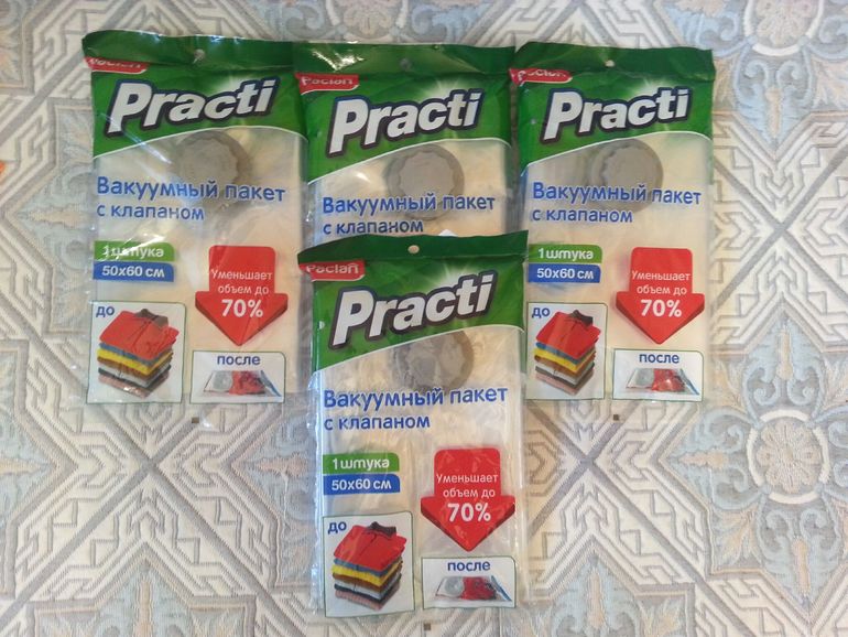 Сегодня пошла в 7 континент за фруктами и нашла там вакуумные пакеты. Это то, что мне было нужно, ибо я хочу уже перестирать пеленки, одежду, одеяла и сложить все в эти пакеты, чтобы не пылились. К сожалению там были только размером 50*60 и оставалось их всего 4 штуки.