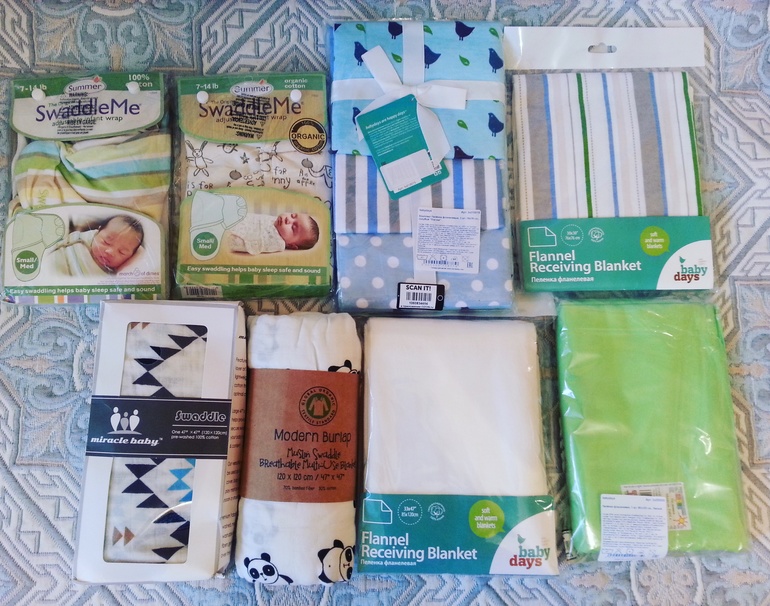 На счет пеленания у меня двоякое мнение. Вообще, я не сторонник пеленания, но если мой ребенок не будет без них спать, то конечно прибегну к пеленкам. С самого рождения планируем пользоваться подгузами, но все равно отдаю себе отчет , что для подстилания пеленок должно быть много. Скажу сразу и честно, ненавижу пеленки с мультяшными героями из грубого хлопка, да я понимаю что они дешевые, но НЕ ХОЧУ!!!!!! На сегодняшний день у меня совсем не большой запас пеленочек, но постепенно пополняю))) Рассмотрим 4 вида пеленок которые у меня имеются на сегодняшний день.