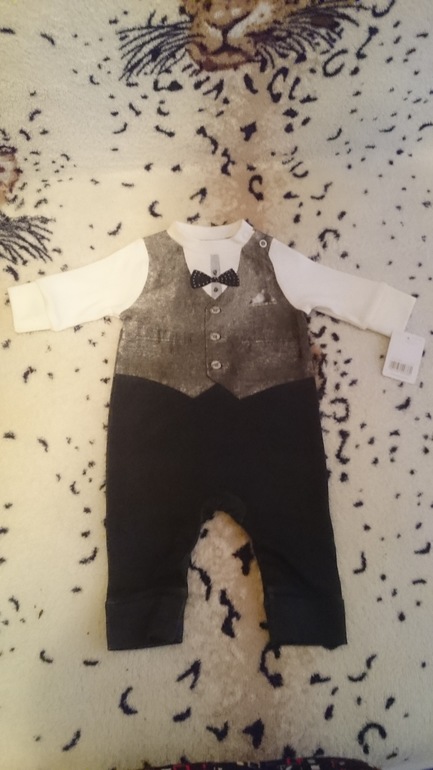 А ещё слип в виде костюмчика,думаю оденем его на выписку,если не будет слишком большой( заказала 56 р- р,но на вид кажется немного больше):