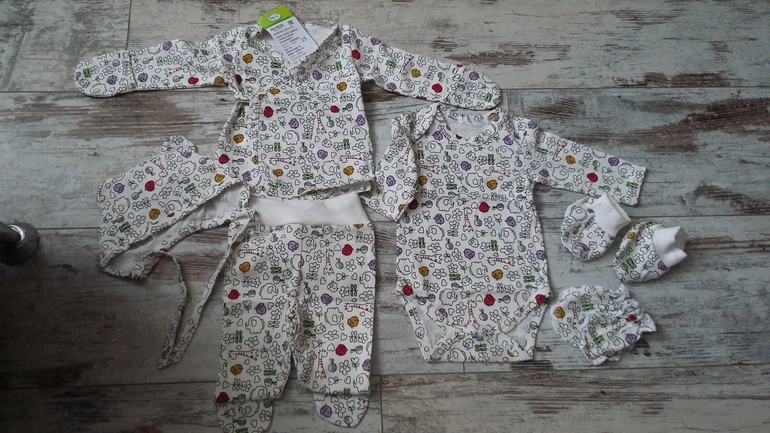 Комплект красивый. Но бодик, потом ползунки, потом распашенка, ещё и царапки (зачем они, когда на распашенке руки закрытые)??)) да ребёнок как капуста будет :-) я за простой слип и сверху комбинезон/мешок (не знаю на какое время года вы ищете). И вам правильно сказали - под конвертом этого никто не увидит.