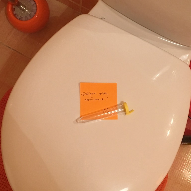 О хорошемУчитывая, что на учёт я встала всего на прошлой неделе, в ритм сдачи анализов на автомате я ещё не вошла, с мочой так вообще беда... Я два раза забывала пописать в пузырёк, а сегодня я нашла от мужа вот это...