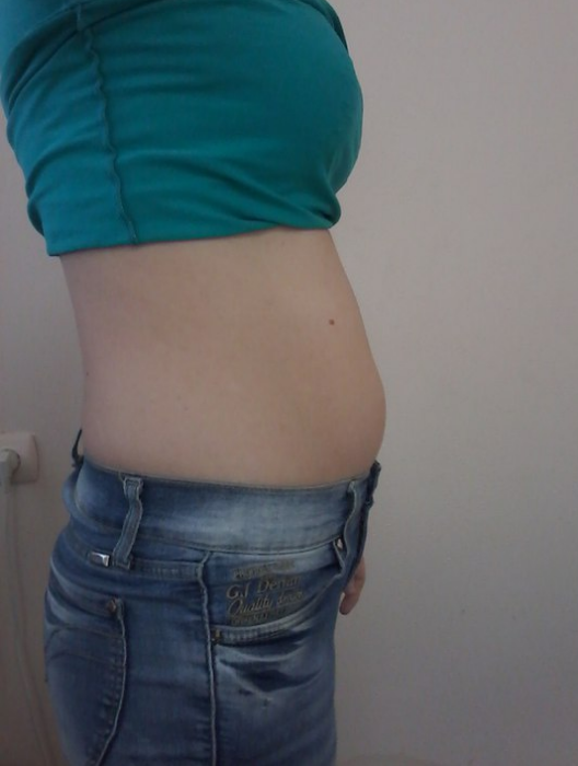 Заморочки13 недель. Жду, когда же появится пузико. А вместо пузика-пузо! Как у неухоженной девушки! Будто я ем тонны сладкого, жирного и всё это откладывается в складке на животе. Стыдно очень. + ощущения, что вот вот приду месячные, обычно перед ними живот надувается, и ходишь шариком. Не могу обтягивающие вещи одеть, думаю, что все смотрят на меня и думают, что я толстая :(