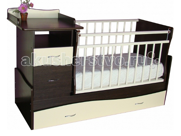 это так,ты сам закрепляешь шурупами(которые кстати идут в комплекте) в том положении в котором самому хочется,вот на этой картинке пеленалка прикручена ближе к левому краю,мы ее прикрутили по серединке,потому как в проходе мешалась бы.Ящик выдвижной на колесиках,так что по ковру тоже он ездить сможет.Для меня единственный и большой минус в кроватке,это то,что в верхнем положении дна кроватки,ящик открыт(я ниже фото прикреплю),но мы с мужем нашли решение,правда пока у него нет времени это исправить.Туда положить кусок фанеры,и опять таки,пока допустим малыш маленький,я туда не буду ничего ложить,это сейчас у нас там много чего,потому как мы комод еще не купили.Пишут что многие собирают за два и несколько дней,потому как там что-то им не нравится в инструкции сборки,мой муж справился за 5 что ли часов,не помню.И то потому что у нас расстановка такая в комнате,что части кровати лежали в одной половине комнаты,а собирали в другой и нам приходилось через нашу двуспальную кровать перетаскивать эти части кровати,чтоб собрать,в общем я наверное вам не смогу объяснить по нормальному)))и кстати у меня в дневнике имеется пост после сборки кроватки