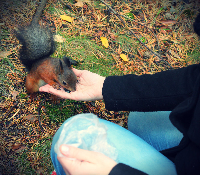 Ездили на эти выходные в гости к моей маме в Кандалакшу,ходили в лес кормить кормить белочек.Такие они классные)