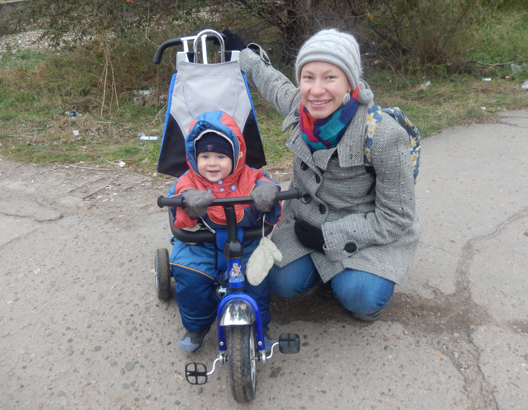 с мамкой (купили ему по авито за 2000 р. велосипед. Ещё неизвестно, кто из нас больше доволен))):
